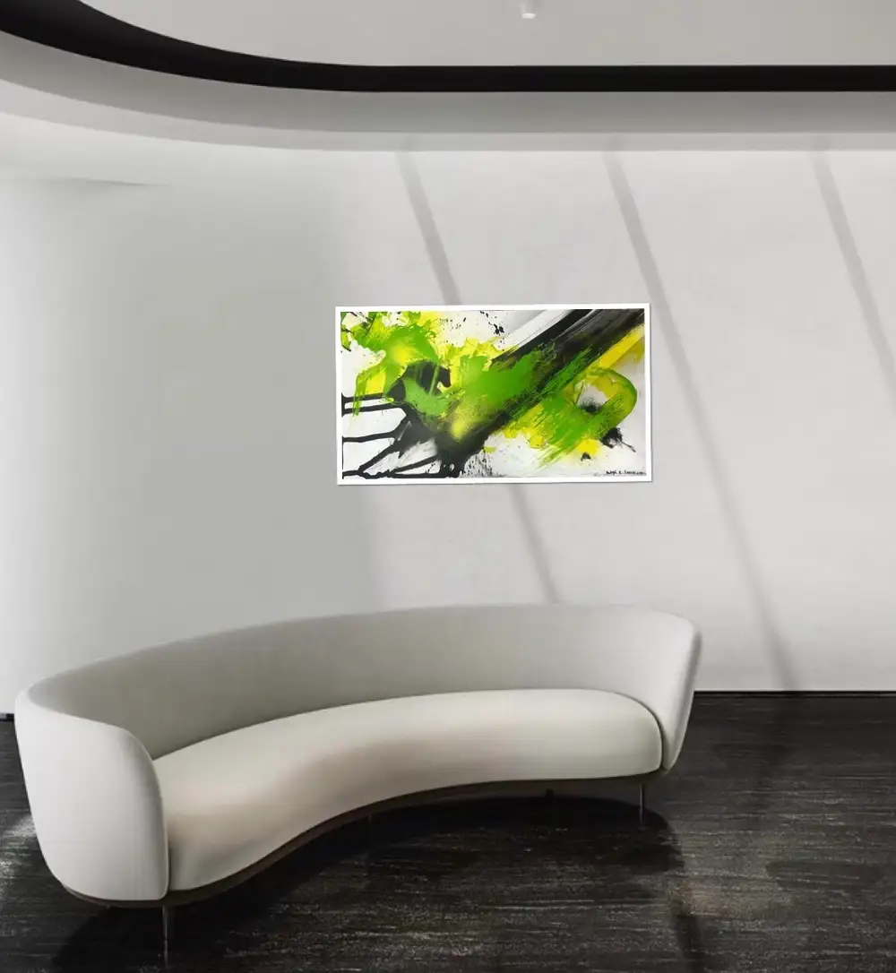 The painting "There are no coincidences" is a deeply thought-provoking work, where black, yellow and green colours mix mysteriously and dynamically. This piece of abstract art gives the impression that the brushstrokes have been applied to the canvas almost of their own accord, guided by a celestial signal, the artist's hand with closed eyes. The composition evokes the unpredictability of life, the mysterious interconnections of fate and the illusion of chance. This painting is the perfect choice for anyone who loves the mystery in art and is looking for a work that is both thought-provoking and inspiring. Bring a touch of mystery into your home or office with this unique and unrepeatable piece of art!